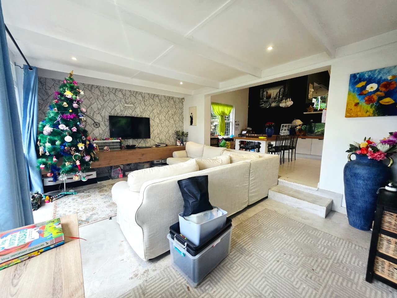 A vaulted ceiling in the dining area adds charm, volume, and architectural interest, complementing the functional, fully fitted kitchen which provides a strong base for modern upgrades. All three bedrooms include built-in cupboards, with the main bedroom featuring an en-suite bathroom for added comfort and convenience.