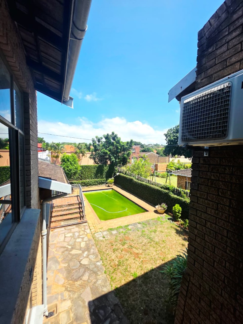 Outdoors, the property continues to impress with a private garden and sparkling swimming pool, perfect for entertaining or enjoying Durban’s warm climate. A balcony offers an elevated space to unwind, while ample parking includes a garage, additional parking bays and a paved driveway. Security features such as fencing and burglar bars provide peace of mind, and fibre internet ensures seamless connectivity.