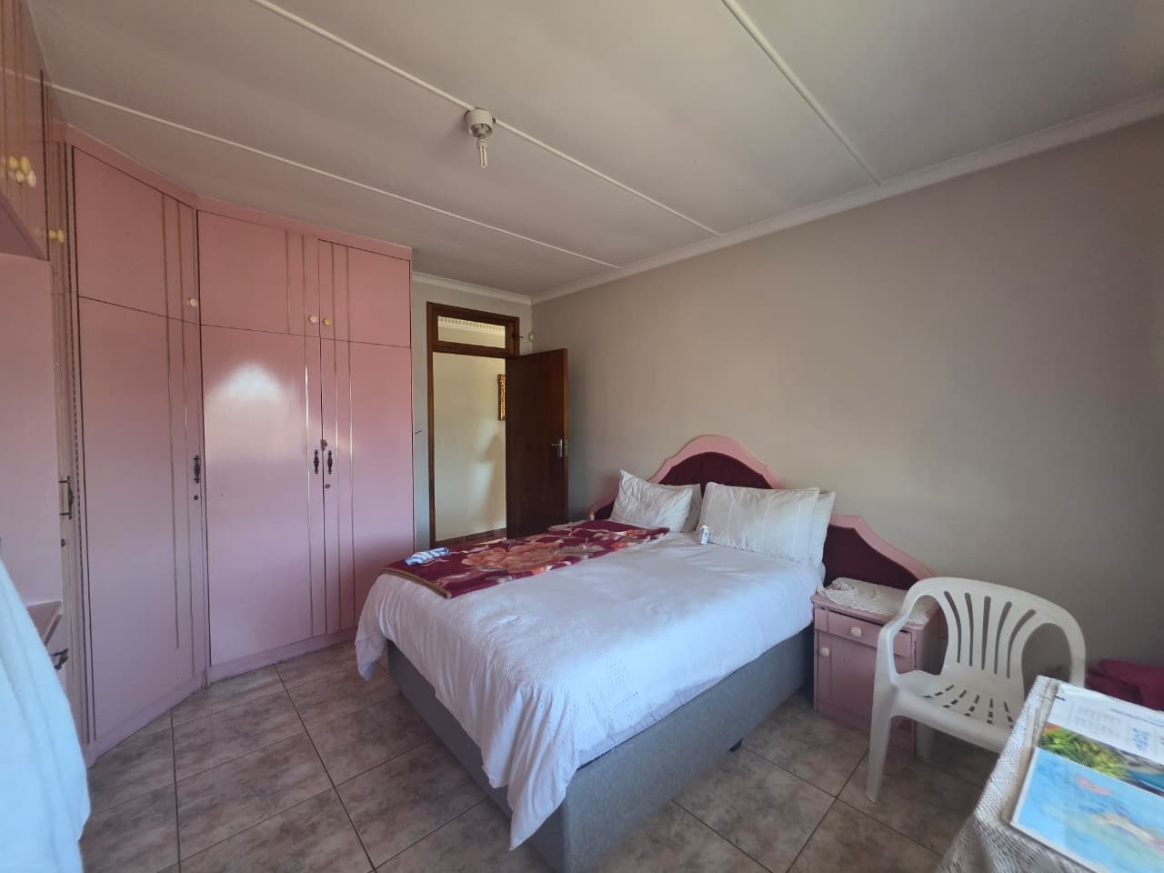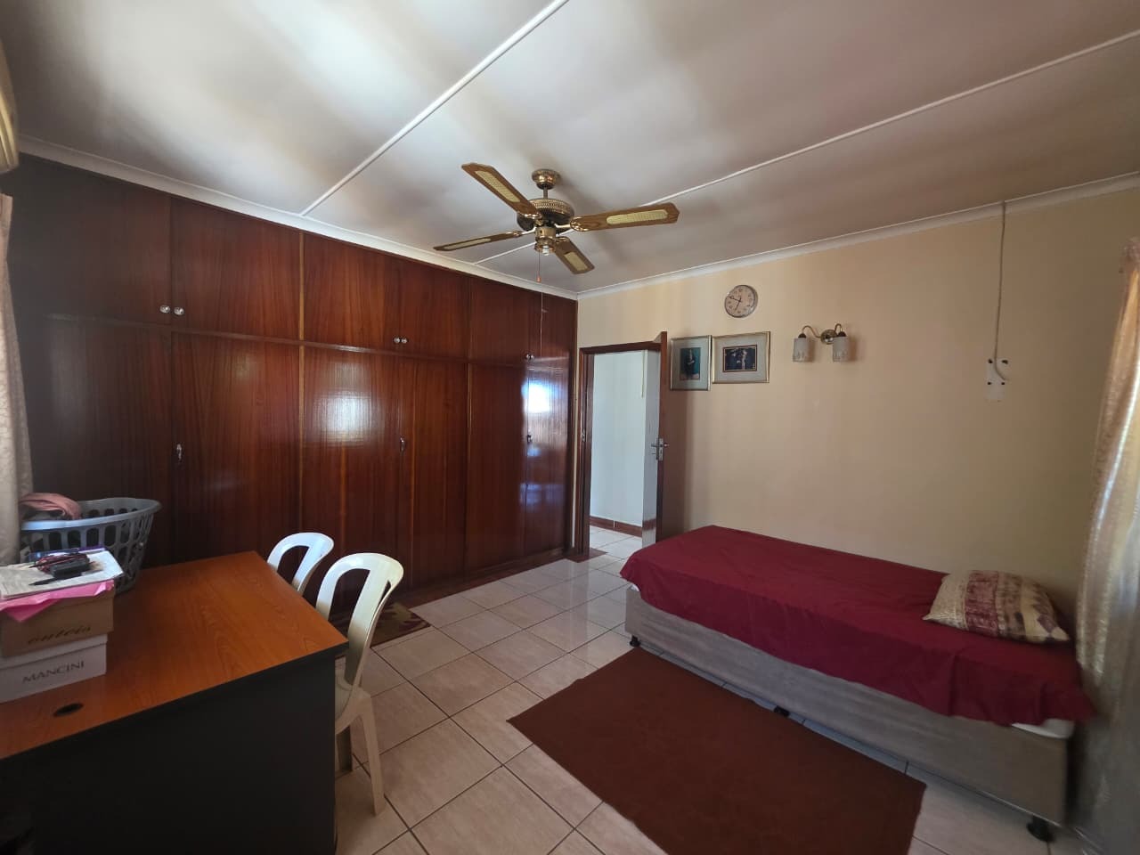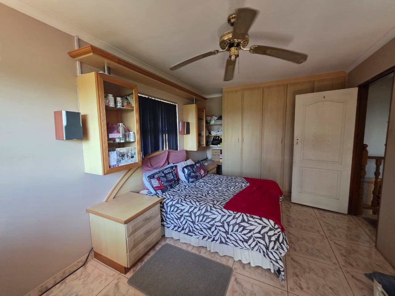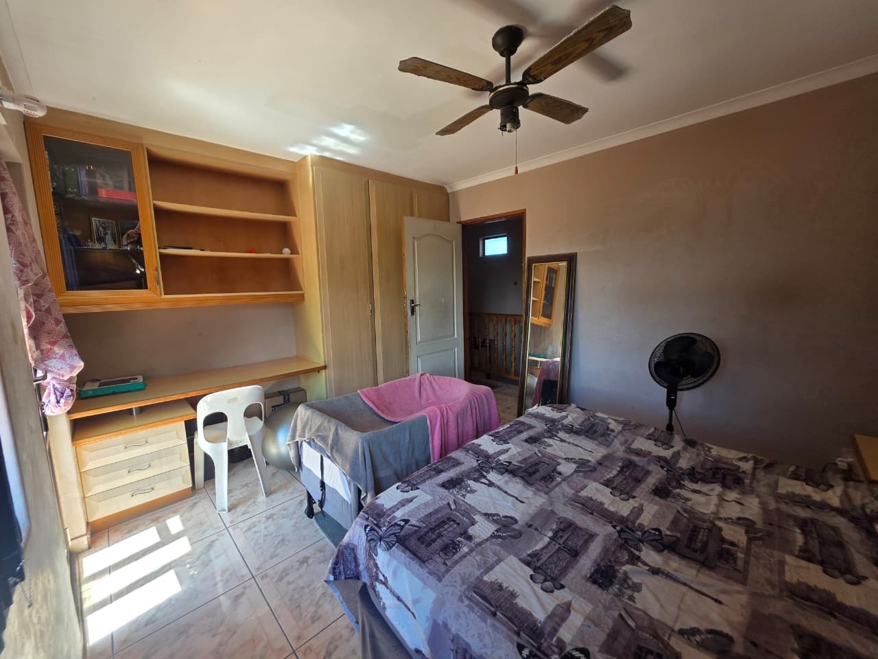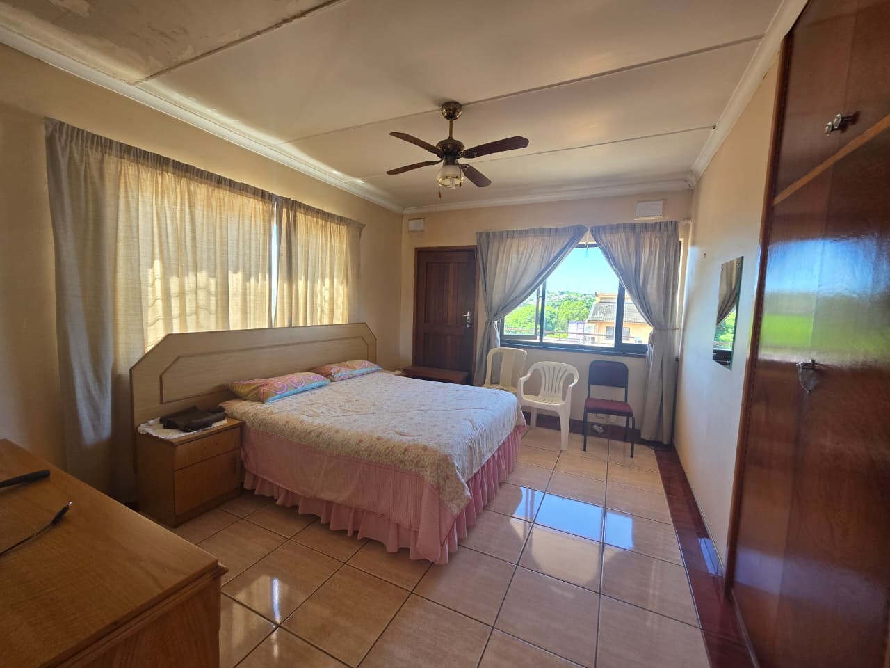 The main home welcomes you with a bright open-plan lounge and dining area, creating a warm and inviting space for everyday living and entertaining. The fully fitted kitchen is both practical and functional, complemented by a separate laundry area. All four bedrooms are generously sized, tiled, and fitted with built-in cupboards and ceiling fans for year-round comfort. The home features two well-appointed bathrooms with contemporary finishes—both offering showers, toilets, and basins. The main bathroom includes additional built-in cupboards for convenient storage, while the second bathroom also features a bathtub. A separate guest toilet adds further convenience.