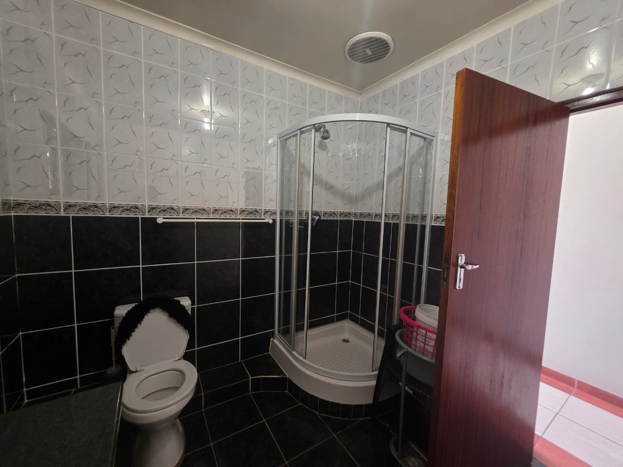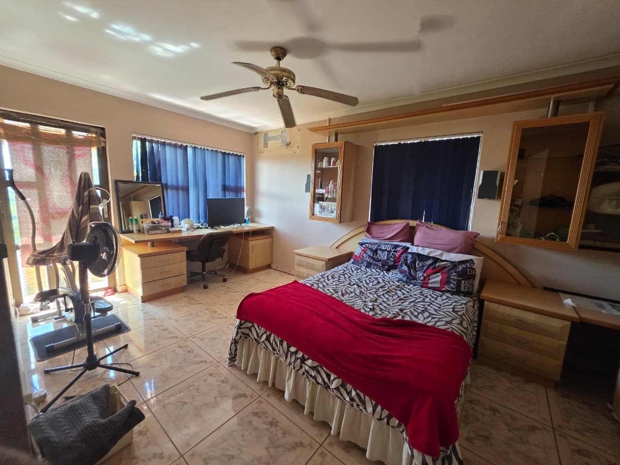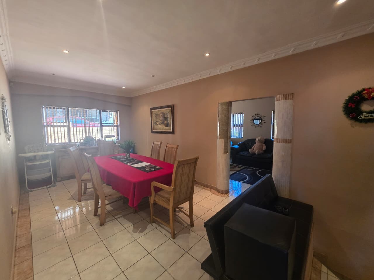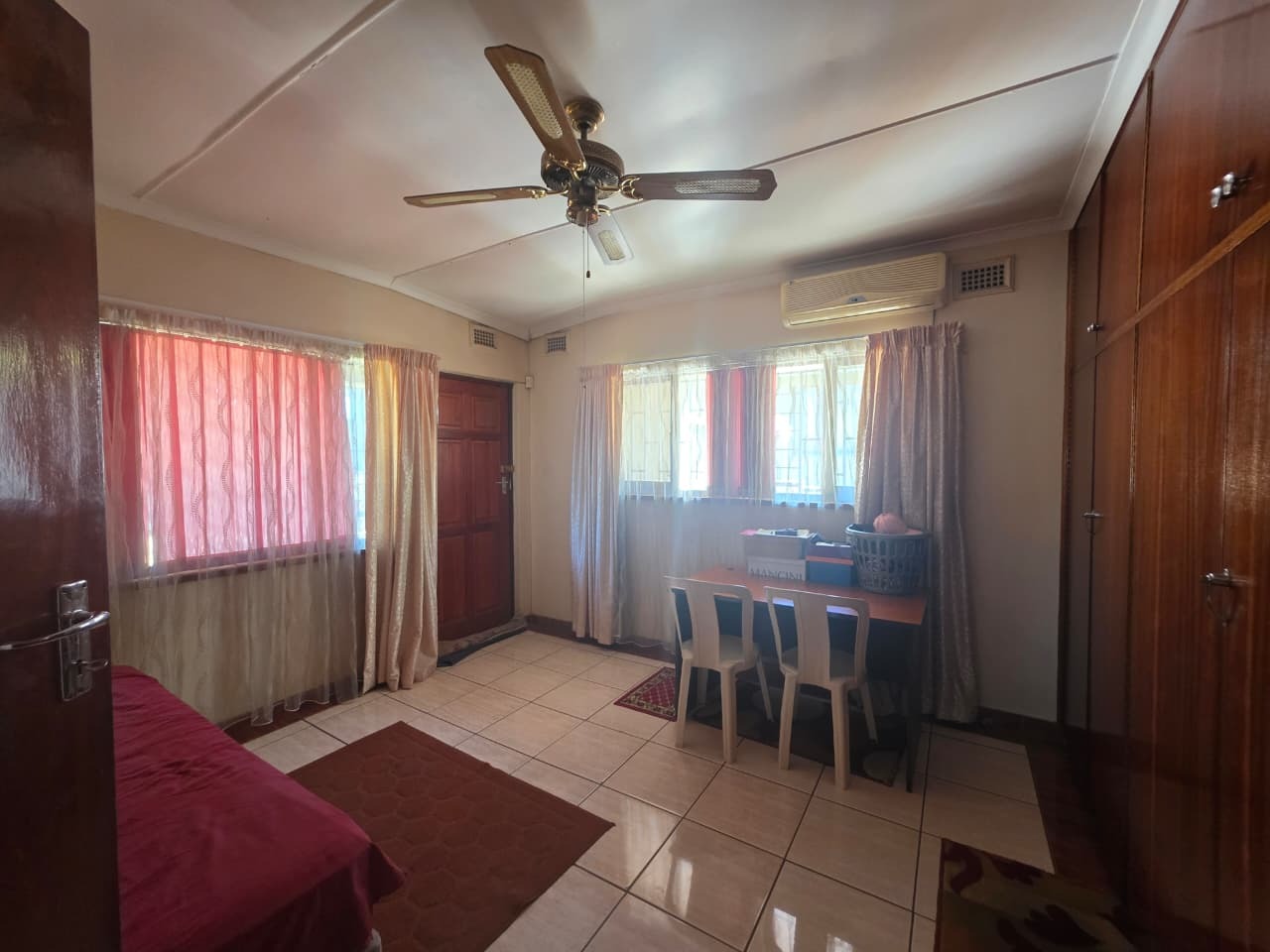 The main home welcomes you with a bright open-plan lounge and dining area, creating a warm and inviting space for everyday living and entertaining. The fully fitted kitchen is both practical and functional, complemented by a separate laundry area. All four bedrooms are generously sized, tiled, and fitted with built-in cupboards and ceiling fans for year-round comfort. The home features two well-appointed bathrooms with contemporary finishes—both offering showers, toilets, and basins. The main bathroom includes additional built-in cupboards for convenient storage, while the second bathroom also features a bathtub. A separate guest toilet adds further convenience.