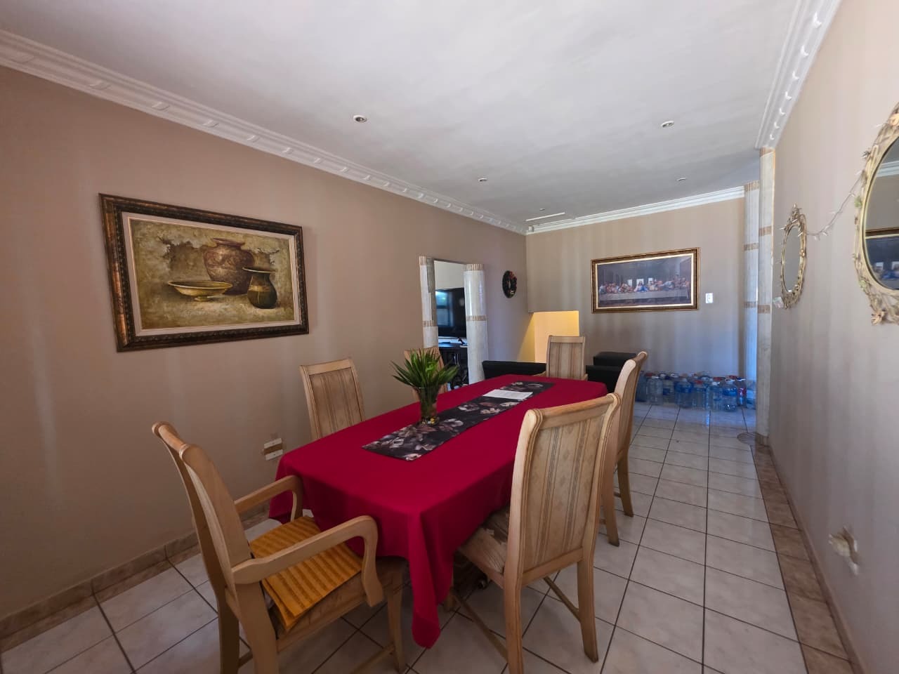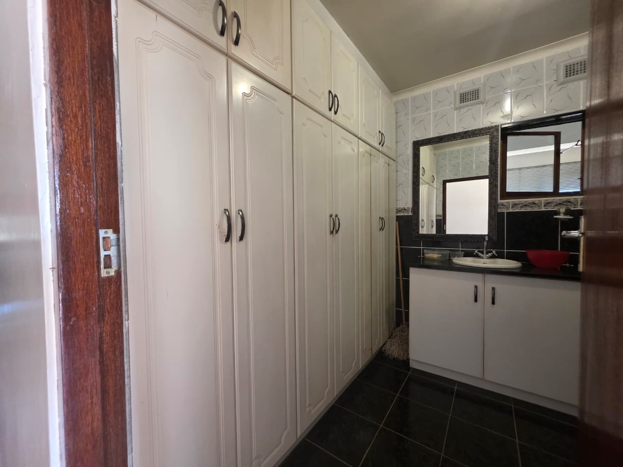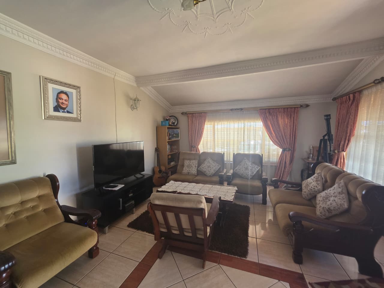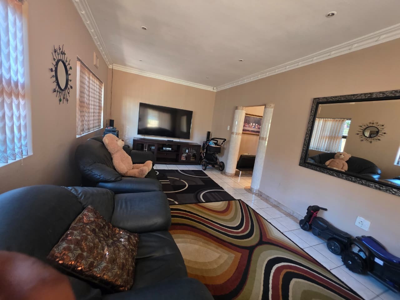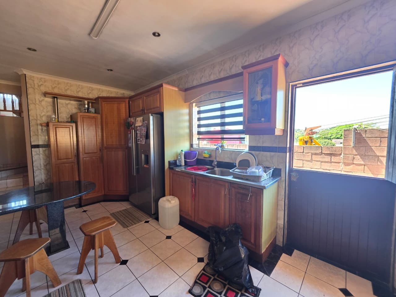 The main home welcomes you with a bright open-plan lounge and dining area, creating a warm and inviting space for everyday living and entertaining. The fully fitted kitchen is both practical and functional, complemented by a separate laundry area. All four bedrooms are generously sized, tiled, and fitted with built-in cupboards and ceiling fans for year-round comfort. The home features two well-appointed bathrooms with contemporary finishes—both offering showers, toilets, and basins. The main bathroom includes additional built-in cupboards for convenient storage, while the second bathroom also features a bathtub. A separate guest toilet adds further convenience.