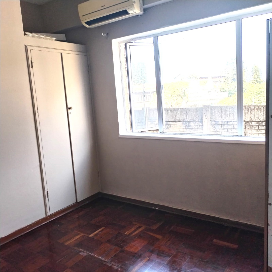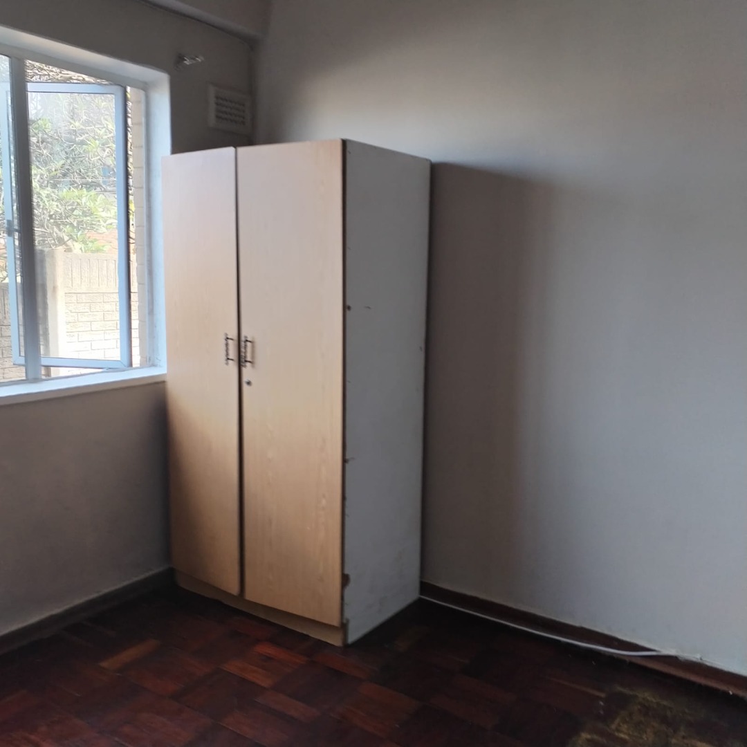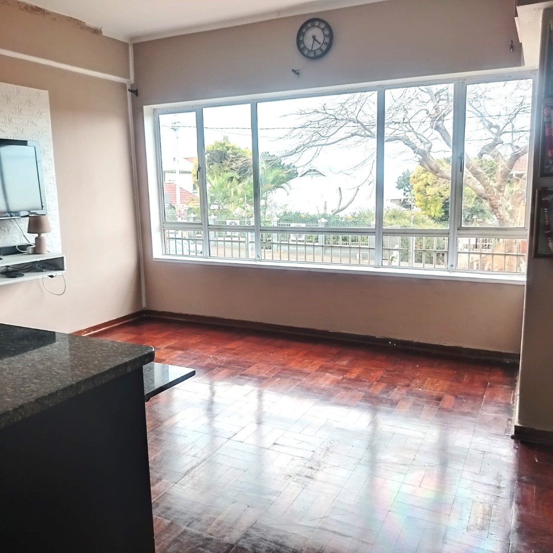 The heart of the home is a light-filled open-plan lounge and dining area that flows seamlessly into a fully fitted kitchen, complete with a separate scullery and ample cupboard space. An inviting entrance hall adds a touch of charm, while the garden area offers a peaceful space to relax and enjoy the scenic views of Durban and the iconic stadium.
