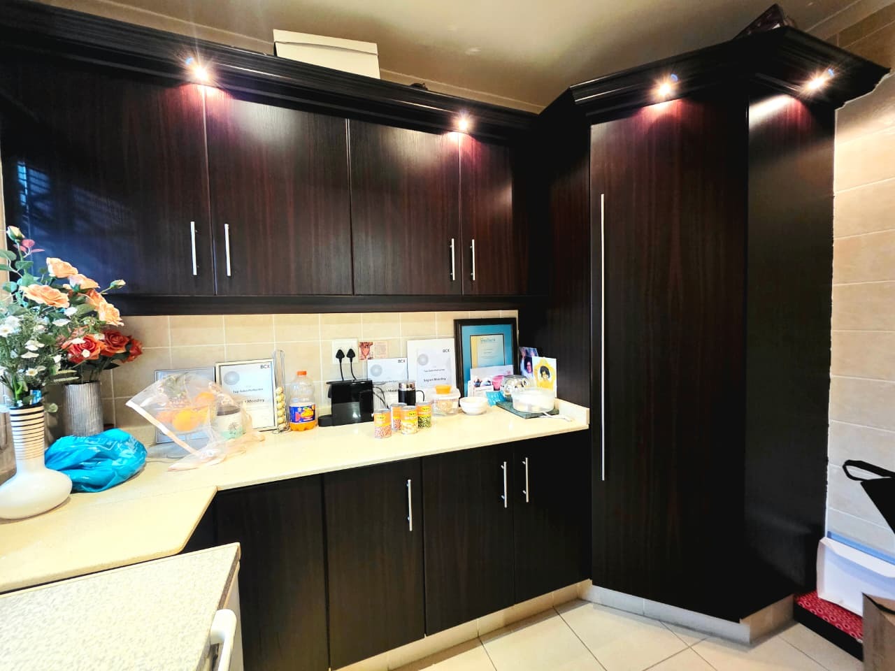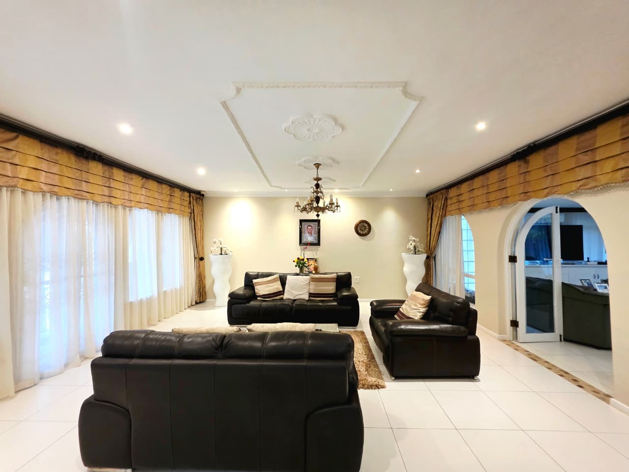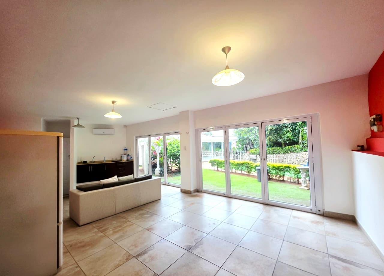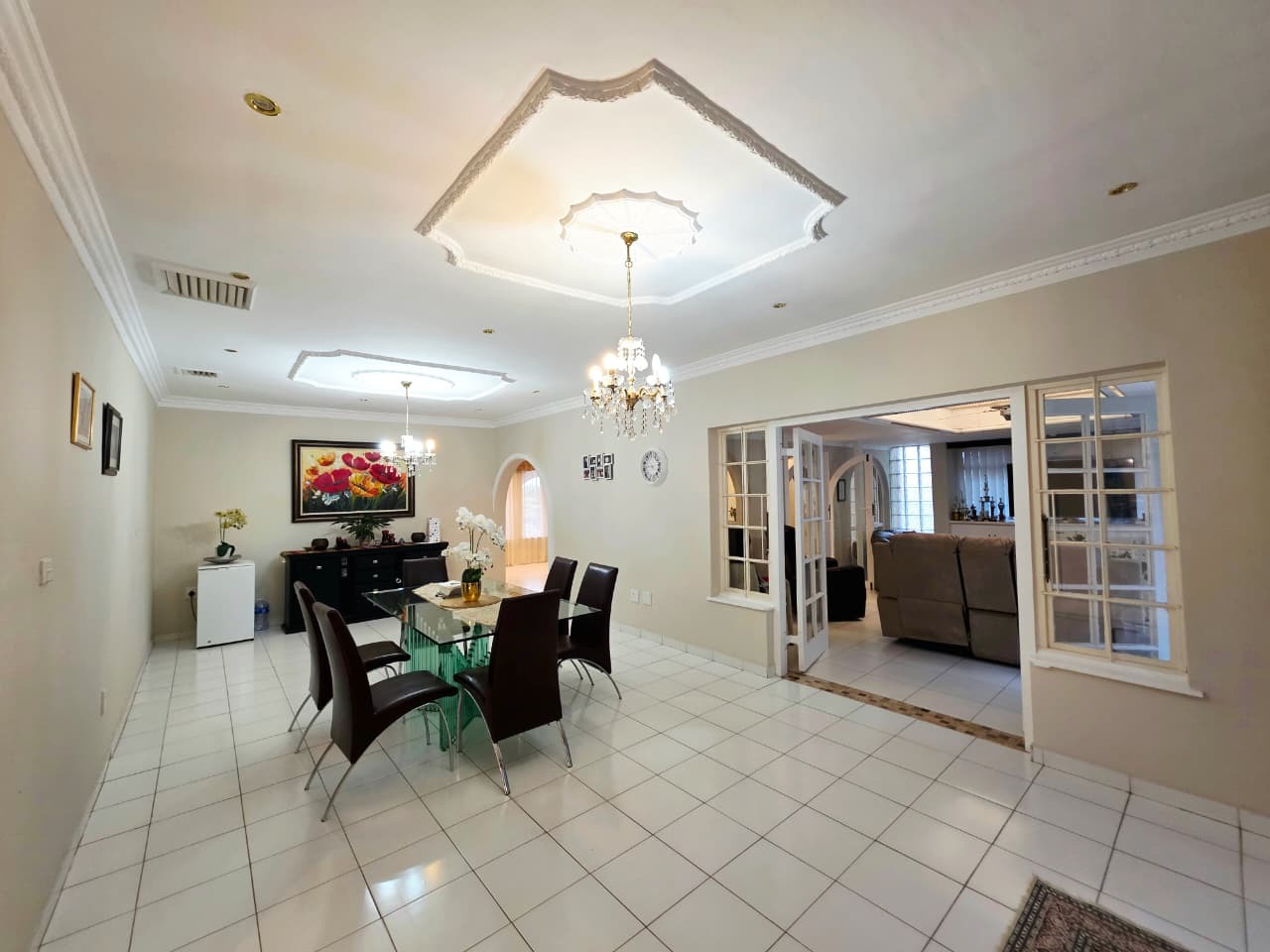 Step inside and you’ll find three well-sized bedrooms, each fitted with built-in cupboards and air-conditioners to ensure year-round comfort. The main bedroom boasts its own private en-suite bathroom, while the home offers an additional full bathroom with both a tub and shower, plus a guest toilet. Multiple living areas, including a family room and TV lounge, provide plenty of space to relax and entertain. The fully fitted kitchen is both practical and stylish, complete with a scullery, pantry, and laundry area.
