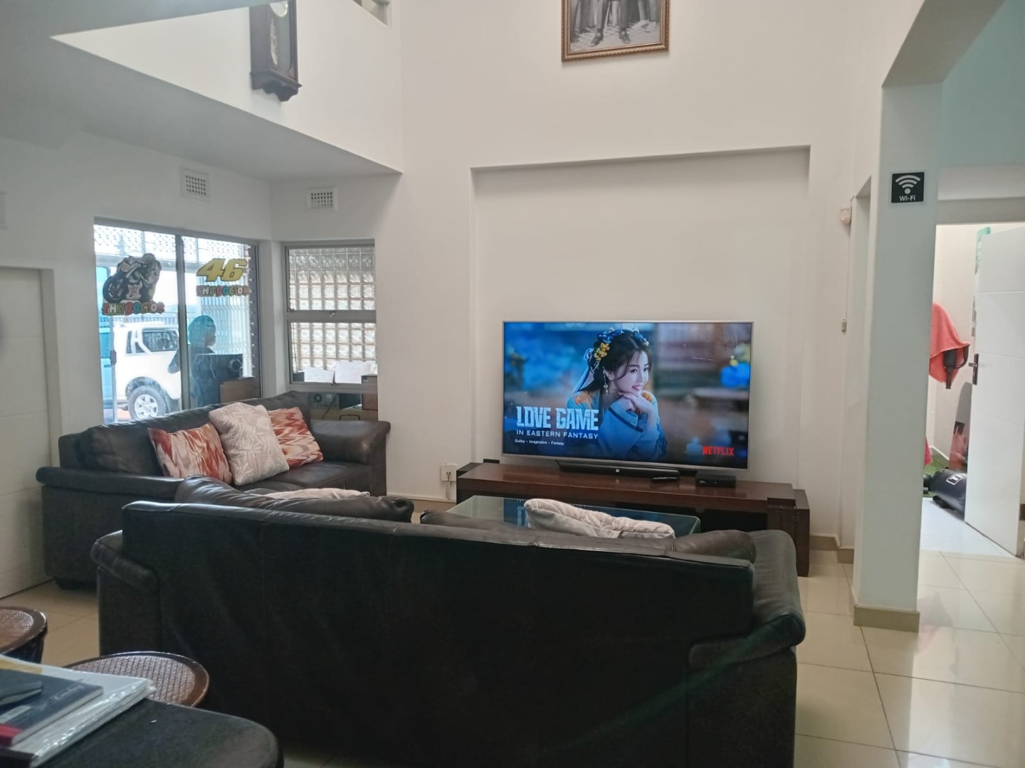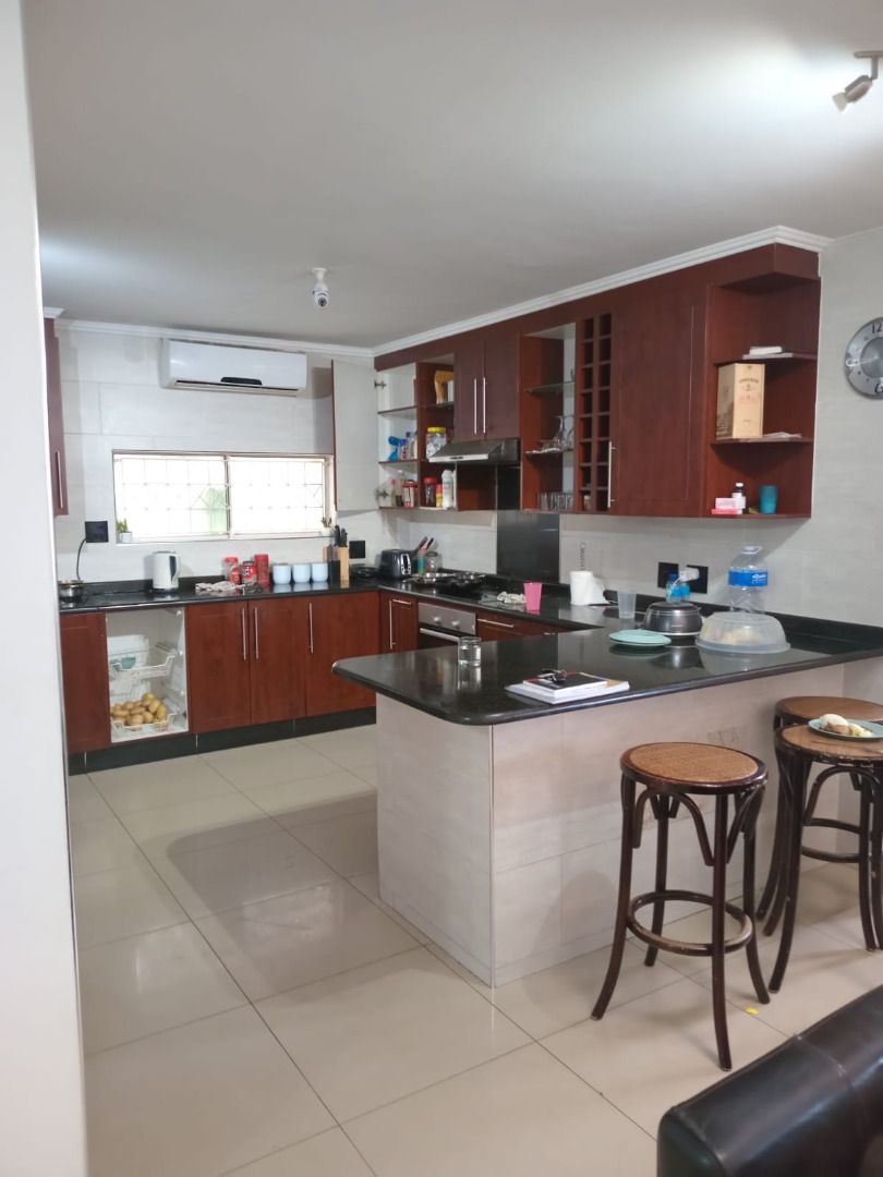 The home features two elegant lounges and a dedicated dining area, making it perfect for both everyday living and entertaining guests. With professional parking space that accommodates up to six cars, as well as two double garages, convenience is never an issue.