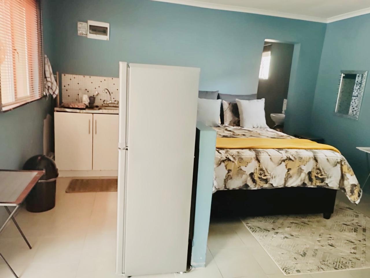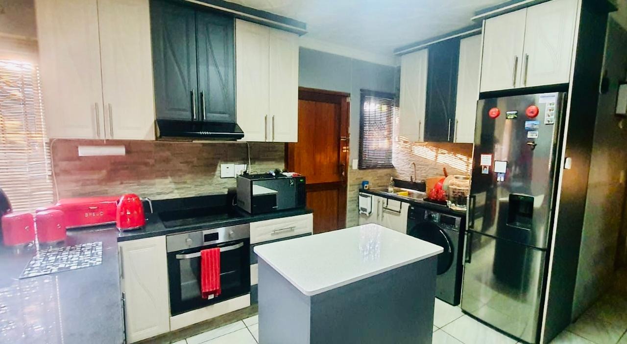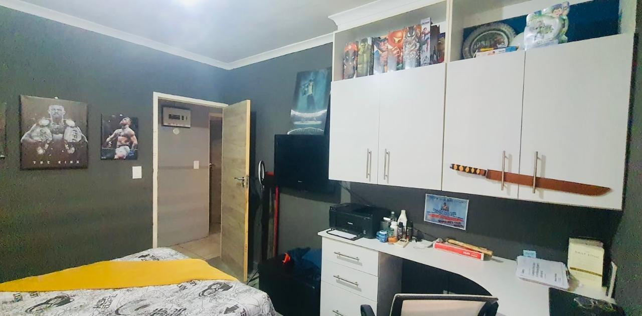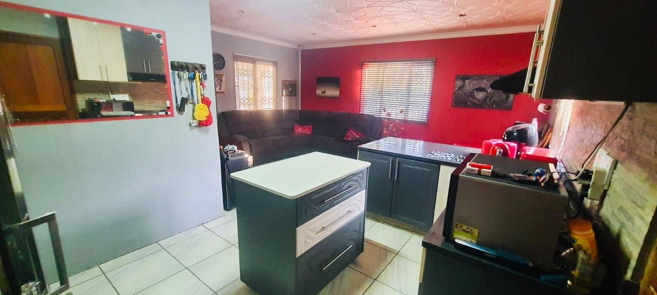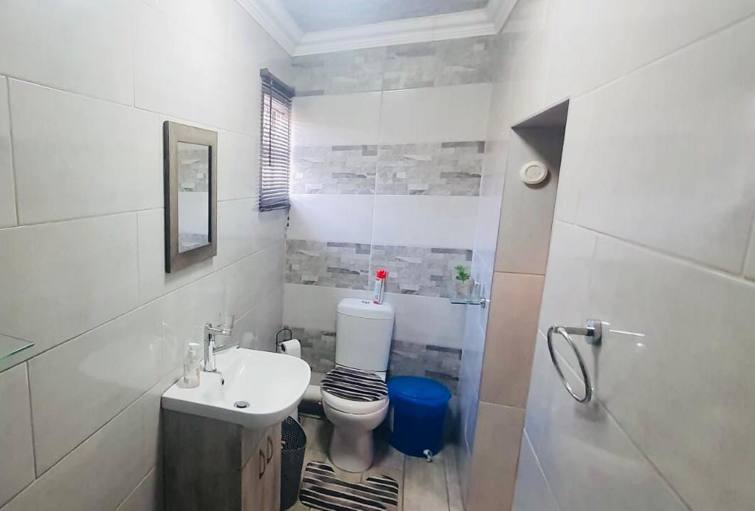 This modern 3-bedroom home situated in Eastbury is close to all amenities and is ready to move in. The house features three bedrooms with built-in cupboards, including a main bedroom with an en-suite bathroom. There is an open-plan lounge and a fully fitted kitchen, as well as a separate guest bathroom. The property also includes a one-bedroom open-plan granny cottage with its own en-suite, making it ideal for extended family or potential rental income. Additional features include a 500-litre JoJo tank to assist during water shedding, an inverter to help during load shedding, CCTV cameras, and an alarm security system. The property offers a carport that accommodates two vehicles, with parking space for four additional vehicles. It is fully fenced and secured with a remote-access driveway gate, providing both comfort and peace of mind.