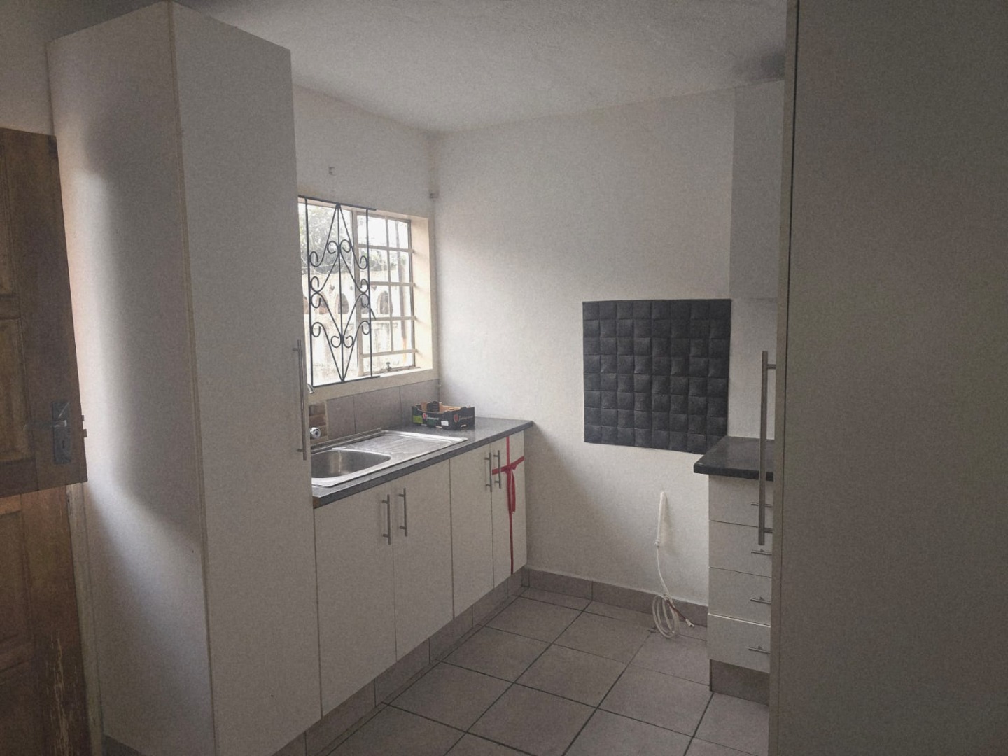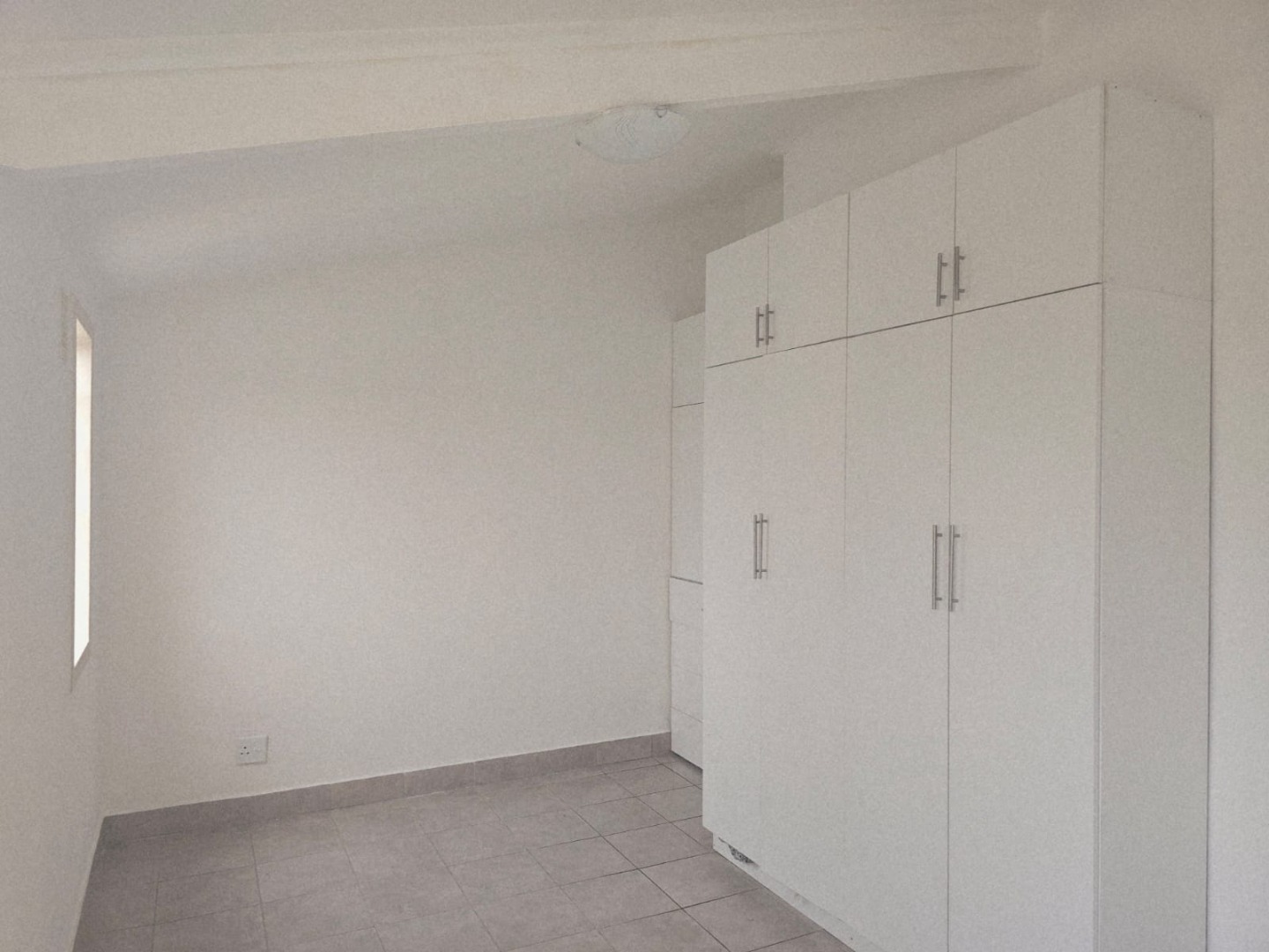 The upper floor features two spacious bedrooms fitted with built-in cupboards, offering privacy and tranquility. Downstairs, you'll find a cozy yet roomy lounge, perfect for family time or unwinding after a long day. The kitchen is fully fitted with built-in cupboards