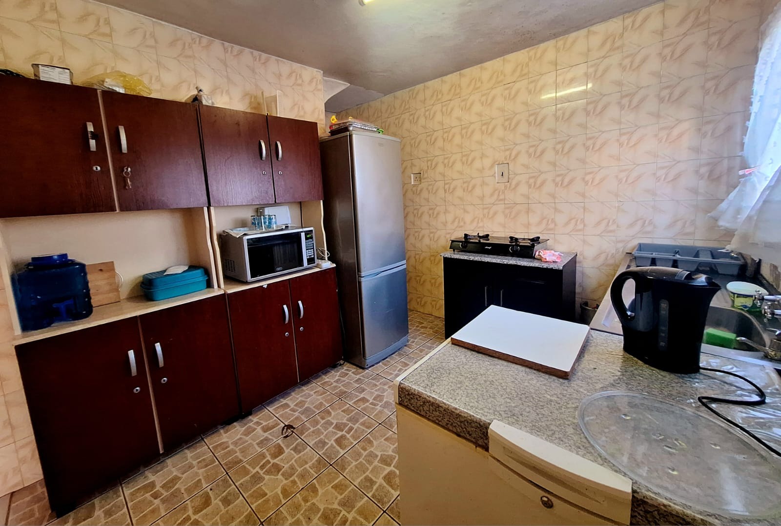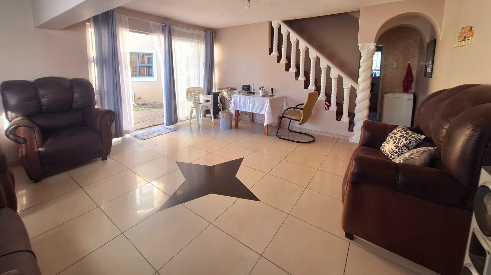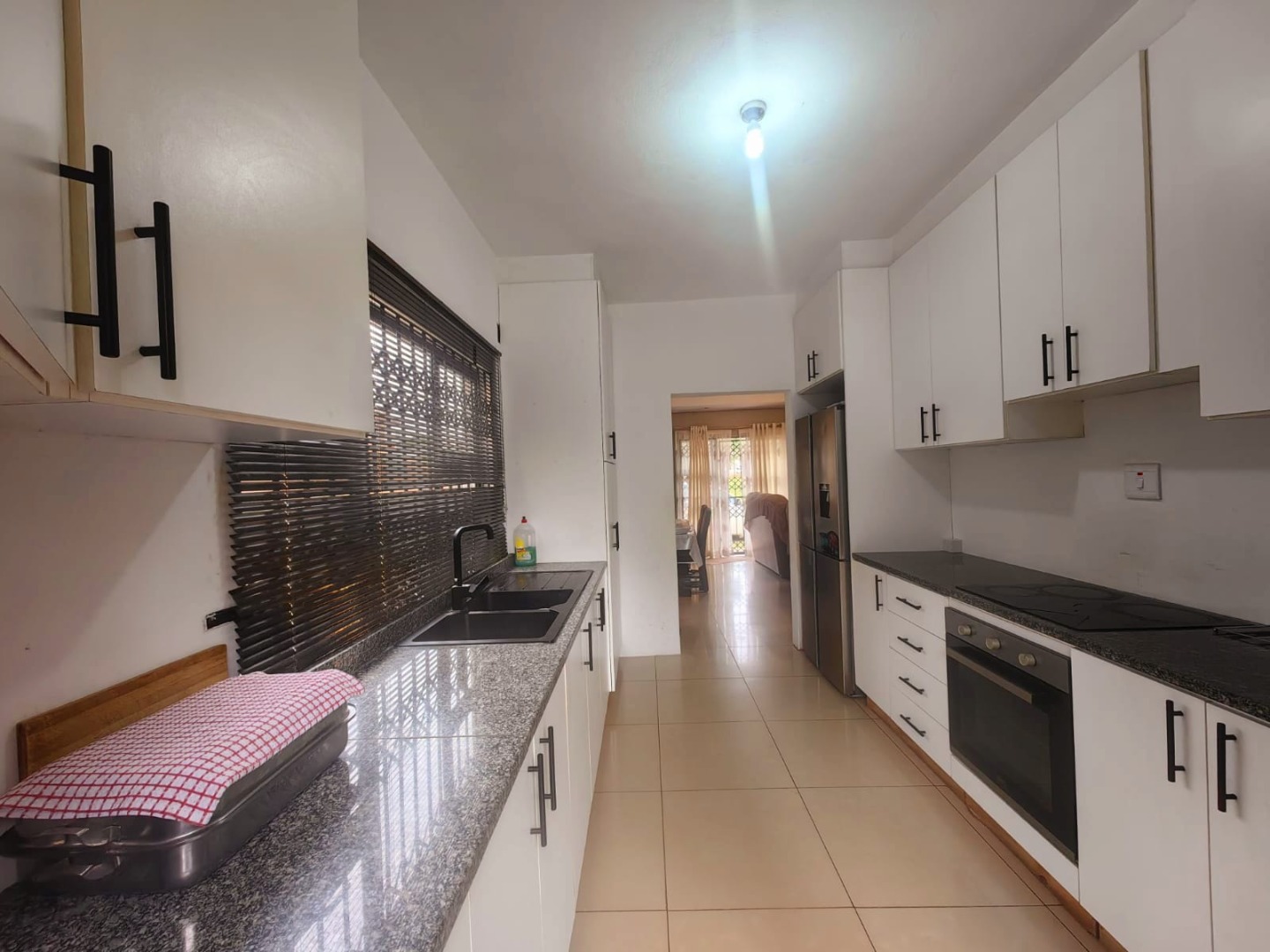 The main house is a freestanding, double-storey residence with a unique design and an inviting atmosphere. It features three spacious bedrooms and a large open-plan lounge and dining area, ideal for hosting family gatherings. The kitchen boasts a beautiful layout with granite countertops and a built-in stove, and the home is fully tiled throughout for a clean, low-maintenance lifestyle.