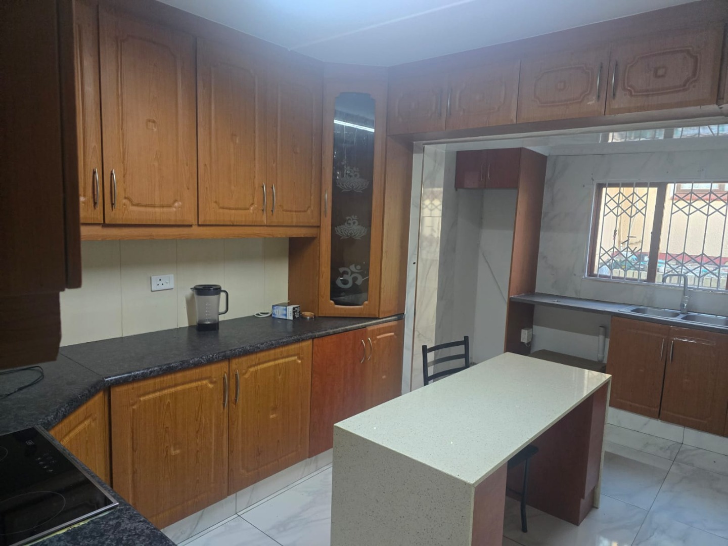 The property also includes a well-designed outbuilding offering 3 fully tiled bedrooms with built-in cupboards, a fully fitted kitchen, a study, and a bathroom with a shower, toilet, and basin. One of the bedrooms in the outbuilding features a walk-in closet as well as its own en-suite, making it ideal for extended family or rental potential.