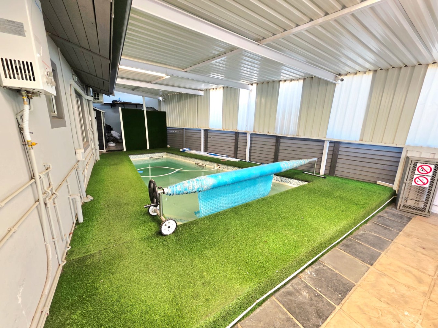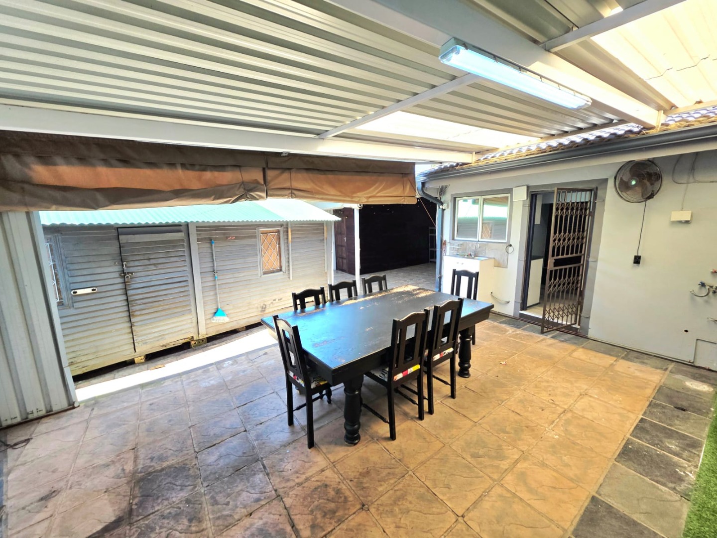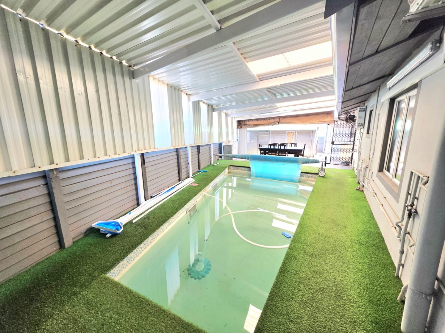Step outside to a fully enclosed backyard designed for the Durban climate. It hosts a sparkling pool for warm summer days, complemented by a stylish outdoor lounge and entertainment area, all supported by a 2000L Jojo tank for consistent water supply.