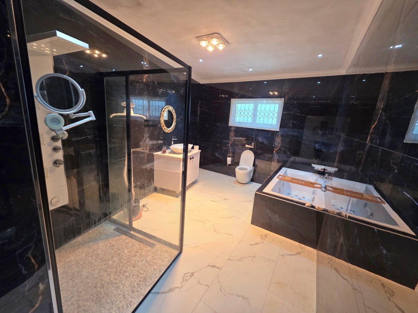 A second study is located in the garage and includes its own private bathroom. This versatile space is perfect for a professional home office or can be easily converted into comfortable servant's quarters or a guest flatlet.