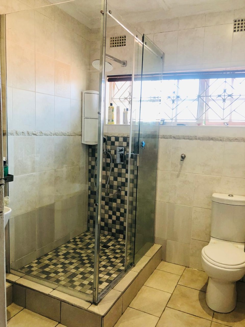 The property includes a double garage, two extra storage rooms, and a mini bathroom—creating the perfect opportunity to convert the space into a self-contained granny cottage for extended family or as a potential rental income source. With ample yard space, the driveway easily accommodates parking for up to 8 vehicles. The home is fully fenced and secured with front-facing security beams, while a remote-access driveway gate adds an extra layer of convenience and safety. Additional features include a solar geyser and a JoJo tank, enhancing energy and water efficiency. This property offers comfort, space, and potential—all in a prime, sought-after location.