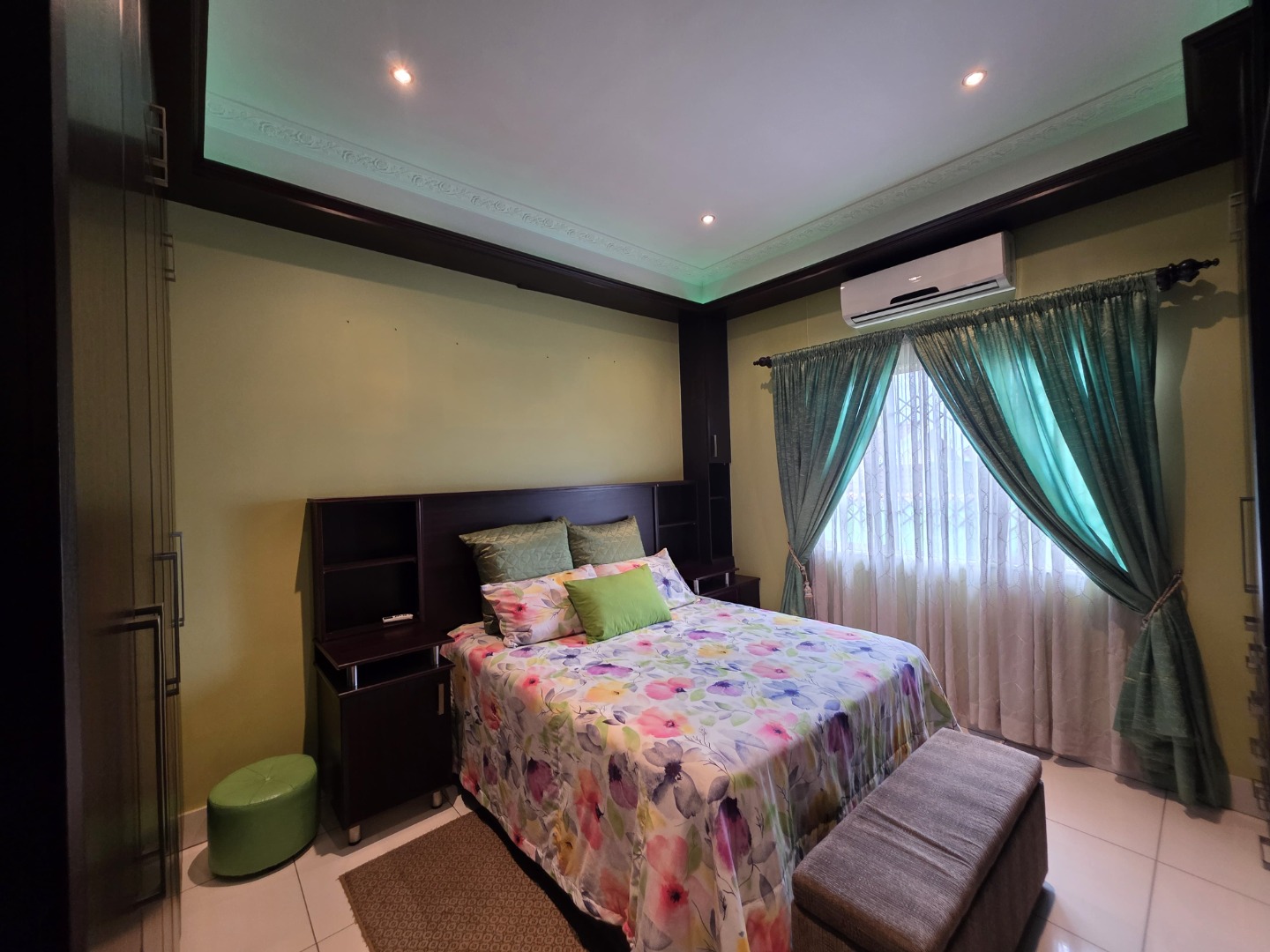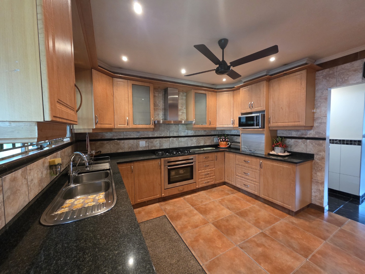 This property offers the perfect blend of modern finishes, secure living and everyday convenience. It features three spacious bedrooms with built-in cupboards and air-conditioning, two modern bathrooms including an en-suite in the main bedroom, and an additional toilet in the garage. The fully fitted kitchen includes granite countertops, a gas stove with an extractor and oven a ceiling fan and ample storage with a water filter on the tap. Living areas consist of a welcoming family lounge, a separate visitor's lounge and a stylish dining area.