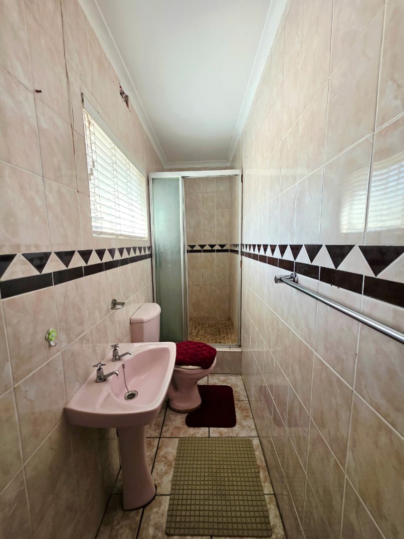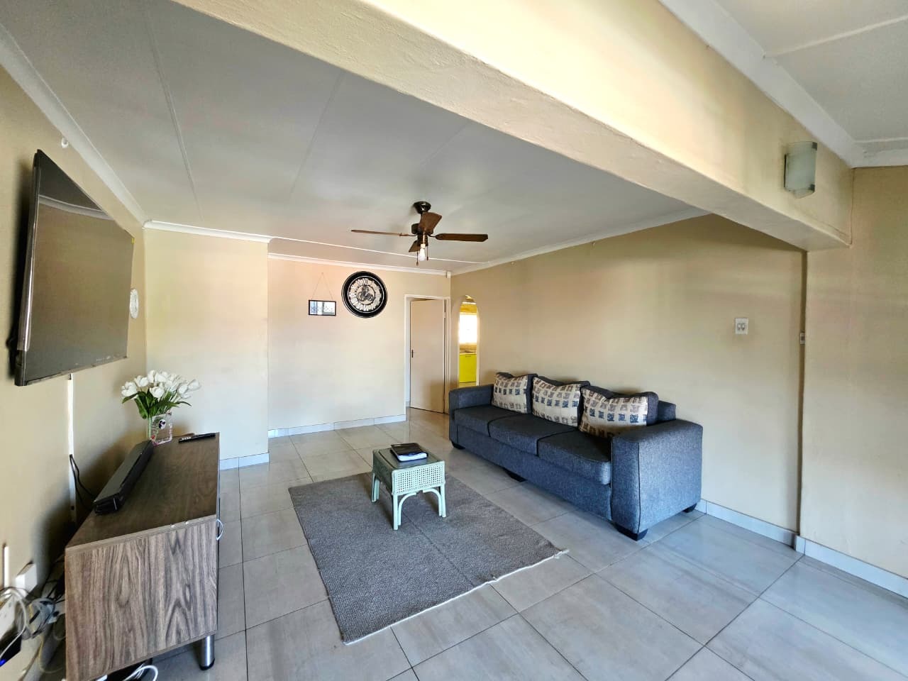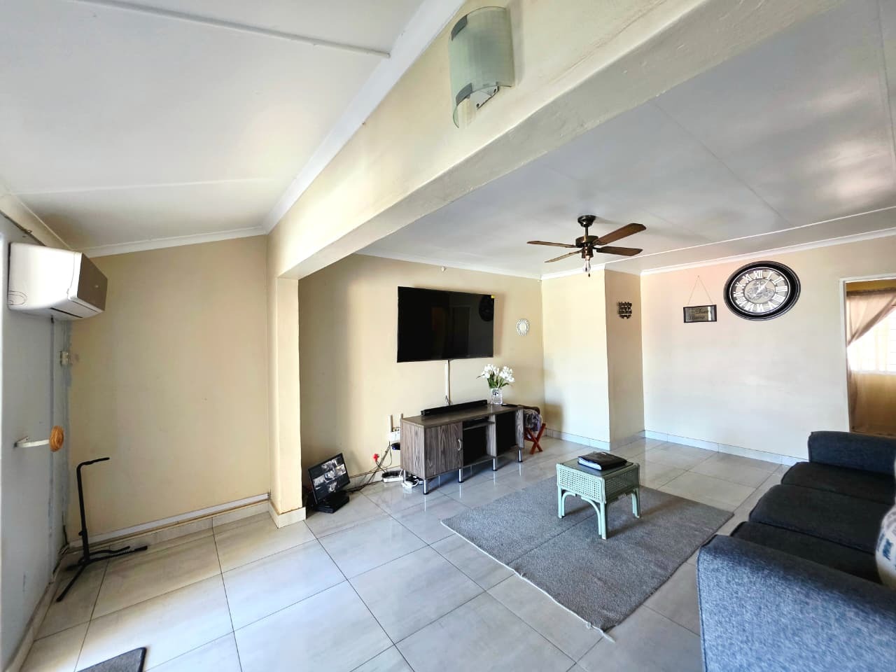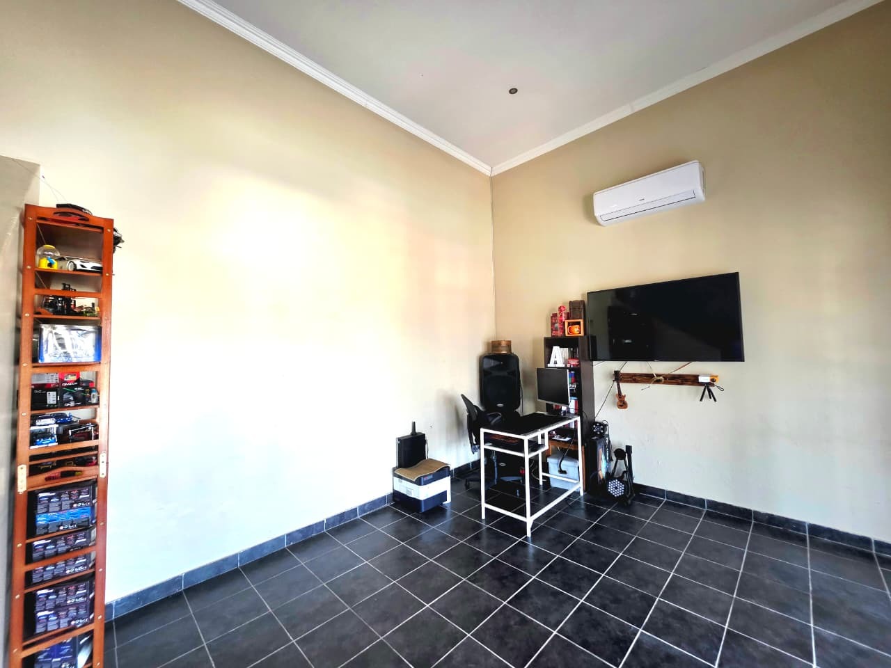 All three bedrooms include built-in cupboards and air-conditioners, ensuring both comfort and functionality. One of the bedrooms opens onto a balcony with elevated views of the surrounding area, thanks to the property being above road level.
