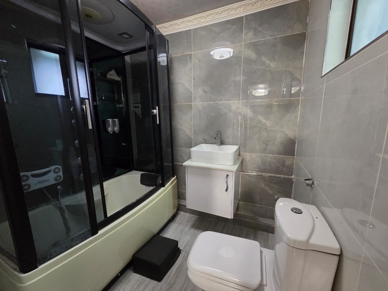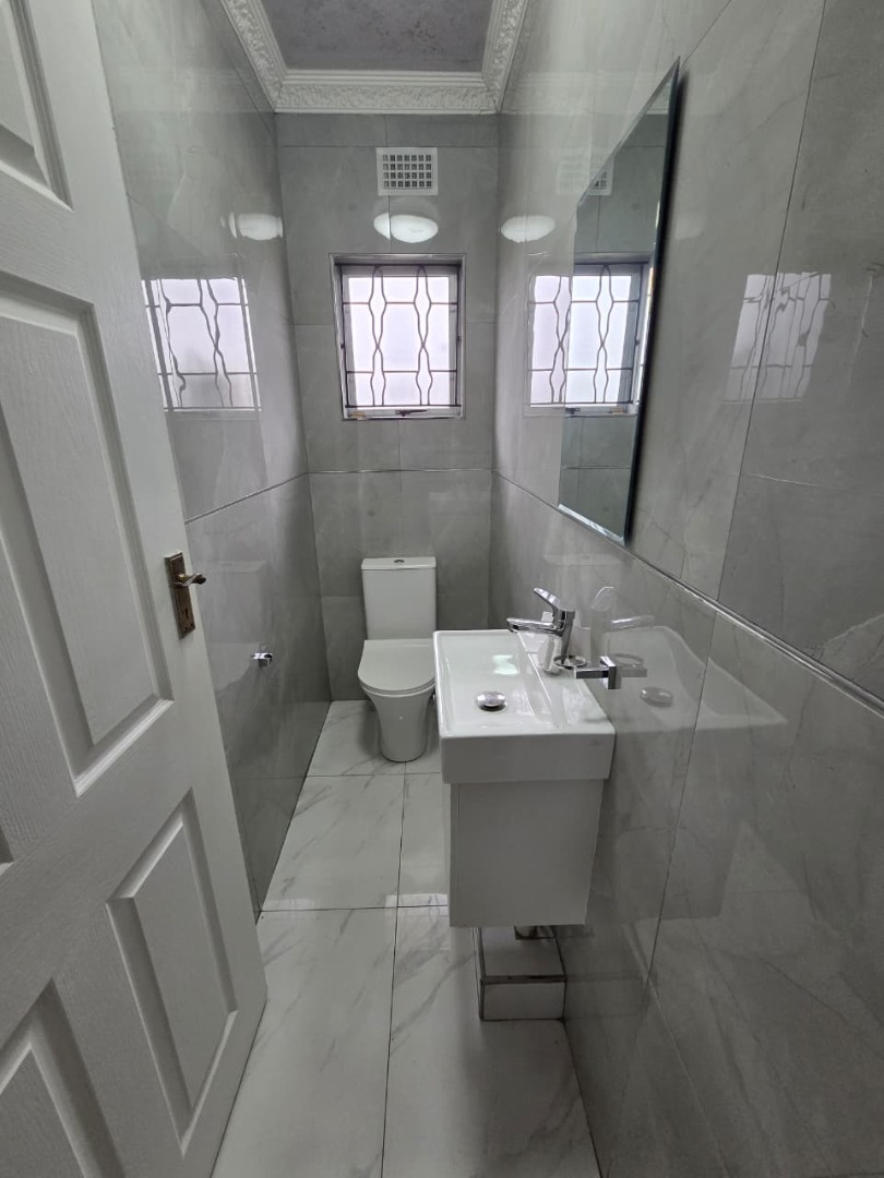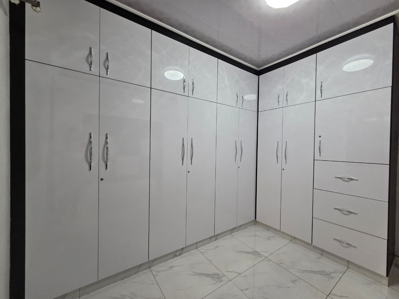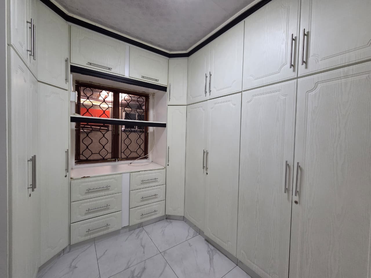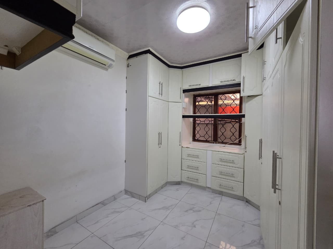 The garage is fully fitted with built-in cupboards for additional storage, while parking is generous with space for two vehicles in the garage and two more outside. Comfort is enhanced with 3 air conditioners, while an inverter system, 2 solar panels, and a prepaid electricity system provide cost-saving energy efficiency.