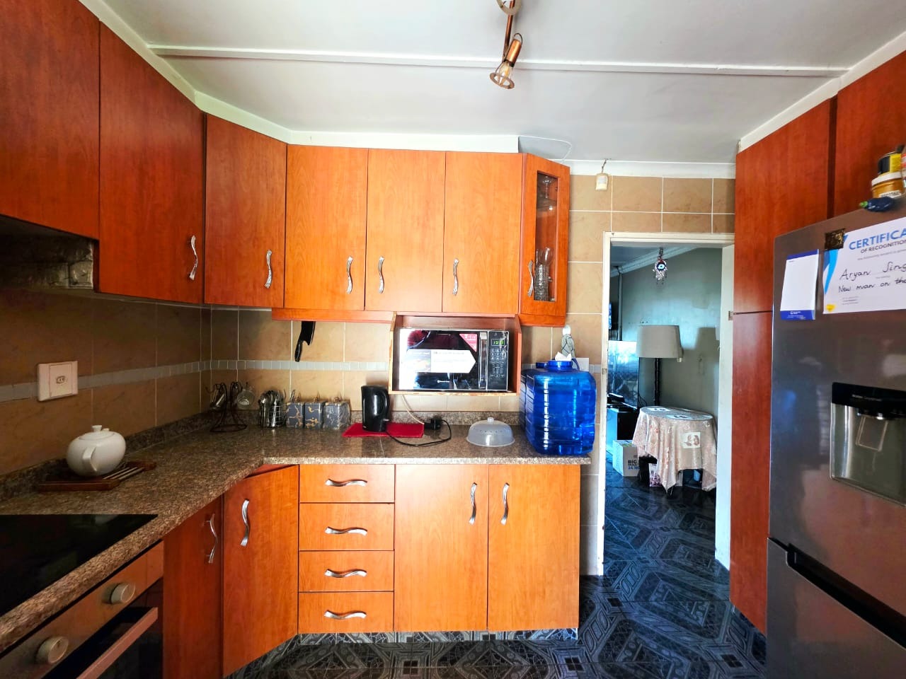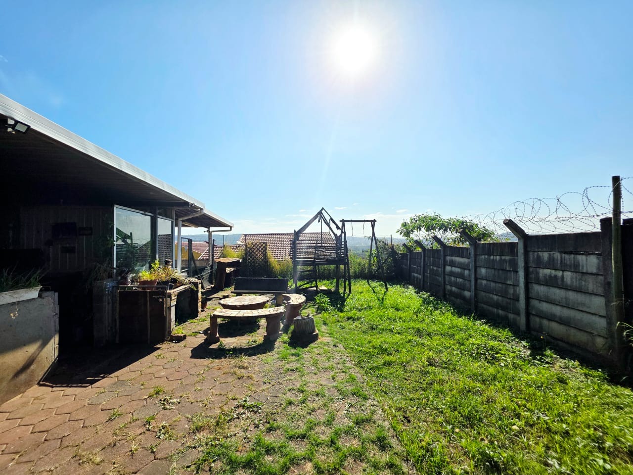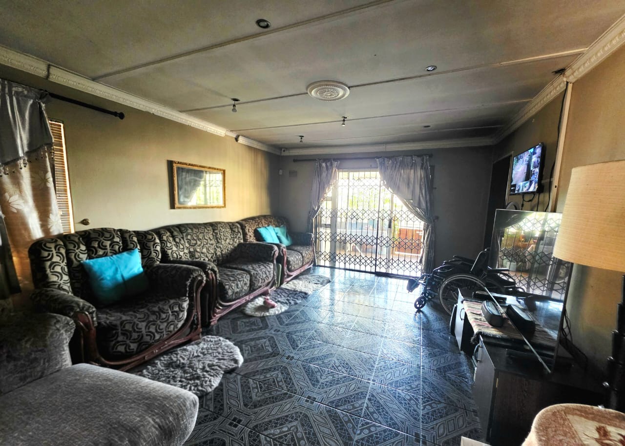 The fully fitted kitchen includes built-in cupboards, ideal for easy meal preparation and storage. The cozy lounge area opens onto a patio—perfect for outdoor relaxation, entertaining guests, or enjoying braais in the generous backyard.