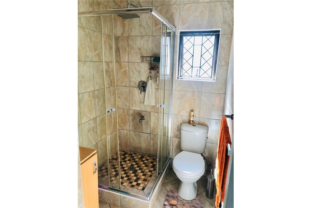 This stunning 3-bedroom house, located on Woodview and close to all amenities, is ready for immediate occupancy. It features two bedrooms with built-in cupboards, one of which includes an en-suite bathroom with a shower. There is also a spacious guest bathroom equipped with a shower. The home boasts a fully fitted kitchen and an open-plan lounge and dining area, creating a warm and inviting living space. Upon entering the house, you're welcomed by a foyer that adds a touch of elegance. The property includes a double garage with an additional shower and toilet. This garage, featuring sliding doors, opens up to the property and is currently used as an entertainment area, but it offers great potential as an income-generating space. There is ample yard space to accommodate up to four vehicles, and the double garage itself can hold two more. The property is fully fenced and secured with a driveway gate and an alarm system. Additionally, a 2,050-liter JoJo tank is installed to help manage water supply throughout the house, making this home both practical and desirable.