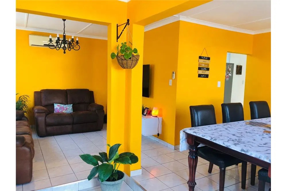 This stunning 3-bedroom house, located on Woodview and close to all amenities, is ready for immediate occupancy. It features two bedrooms with built-in cupboards, one of which includes an en-suite bathroom with a shower. There is also a spacious guest bathroom equipped with a shower. The home boasts a fully fitted kitchen and an open-plan lounge and dining area, creating a warm and inviting living space. Upon entering the house, you're welcomed by a foyer that adds a touch of elegance. The property includes a double garage with an additional shower and toilet. This garage, featuring sliding doors, opens up to the property and is currently used as an entertainment area, but it offers great potential as an income-generating space. There is ample yard space to accommodate up to four vehicles, and the double garage itself can hold two more. The property is fully fenced and secured with a driveway gate and an alarm system. Additionally, a 2,050-liter JoJo tank is installed to help manage water supply throughout the house, making this home both practical and desirable.