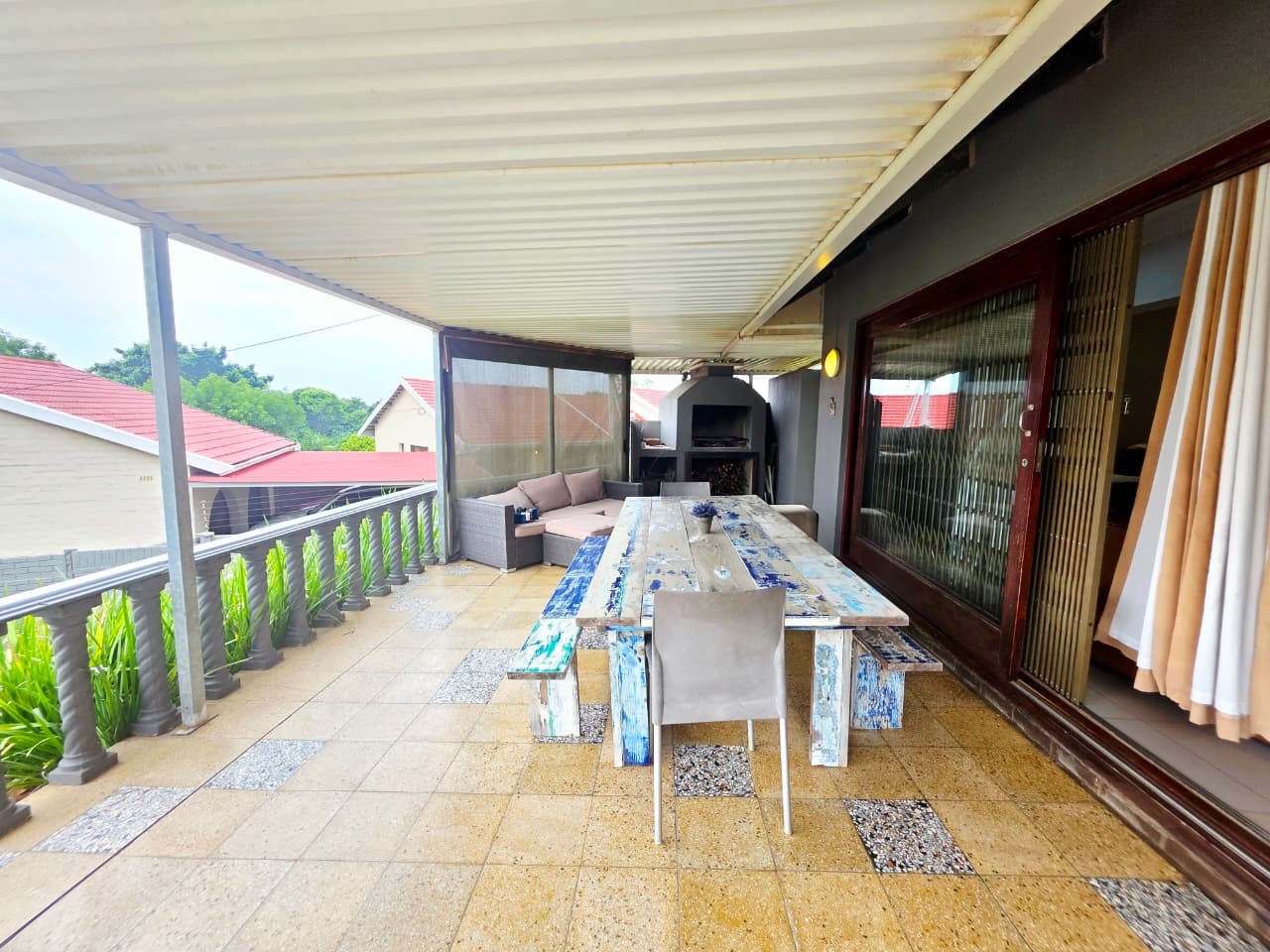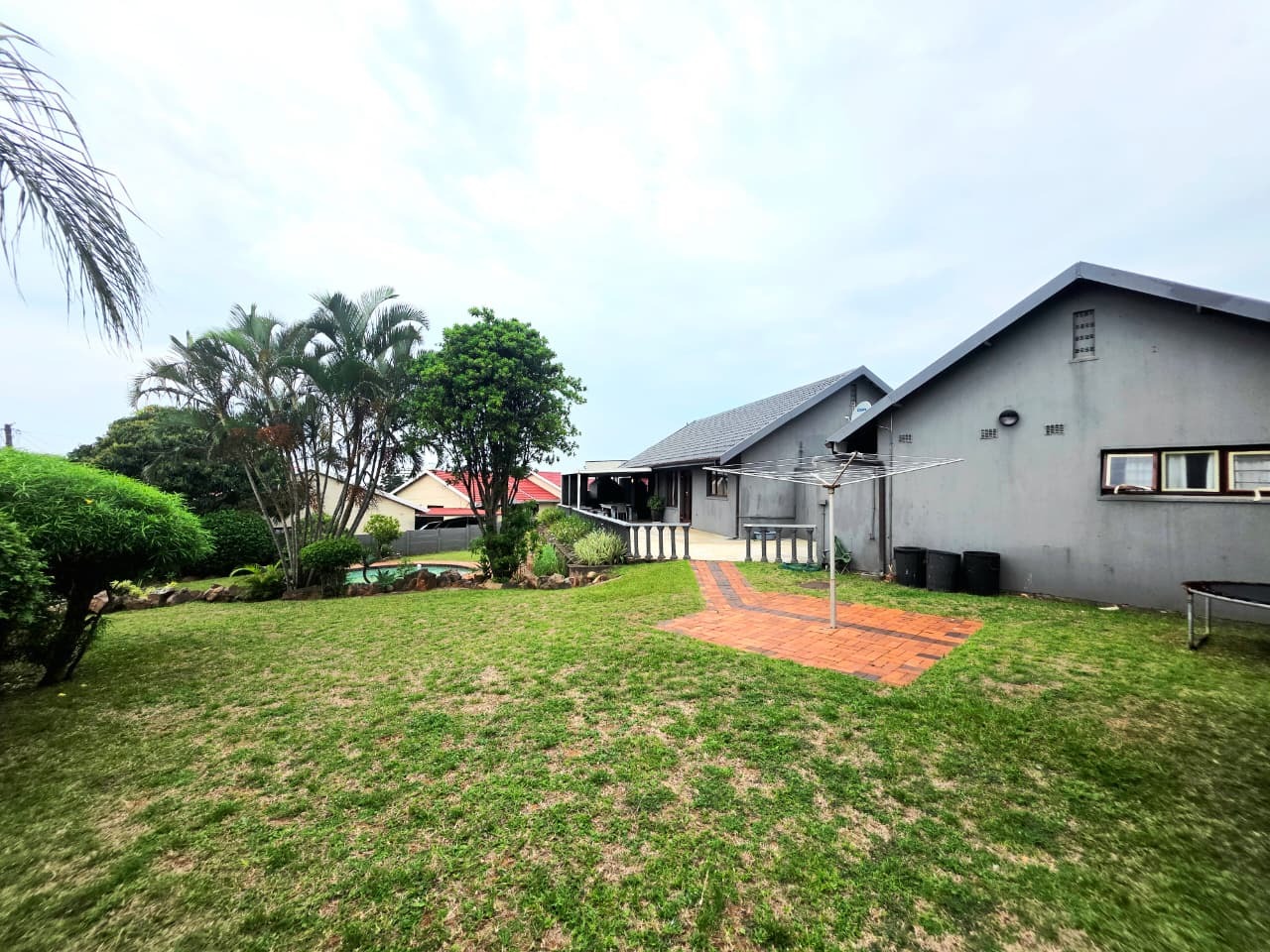 The outdoor area is an entertainer’s dream. A covered patio with a built-in braai overlooks a sparkling swimming pool and expansive garden, creating a private sanctuary for weekend entertaining, relaxed family afternoons, or peaceful evenings under the coastal sky. The level, generously sized land offers abundant space for children and pets, while also presenting exciting potential for future additions.