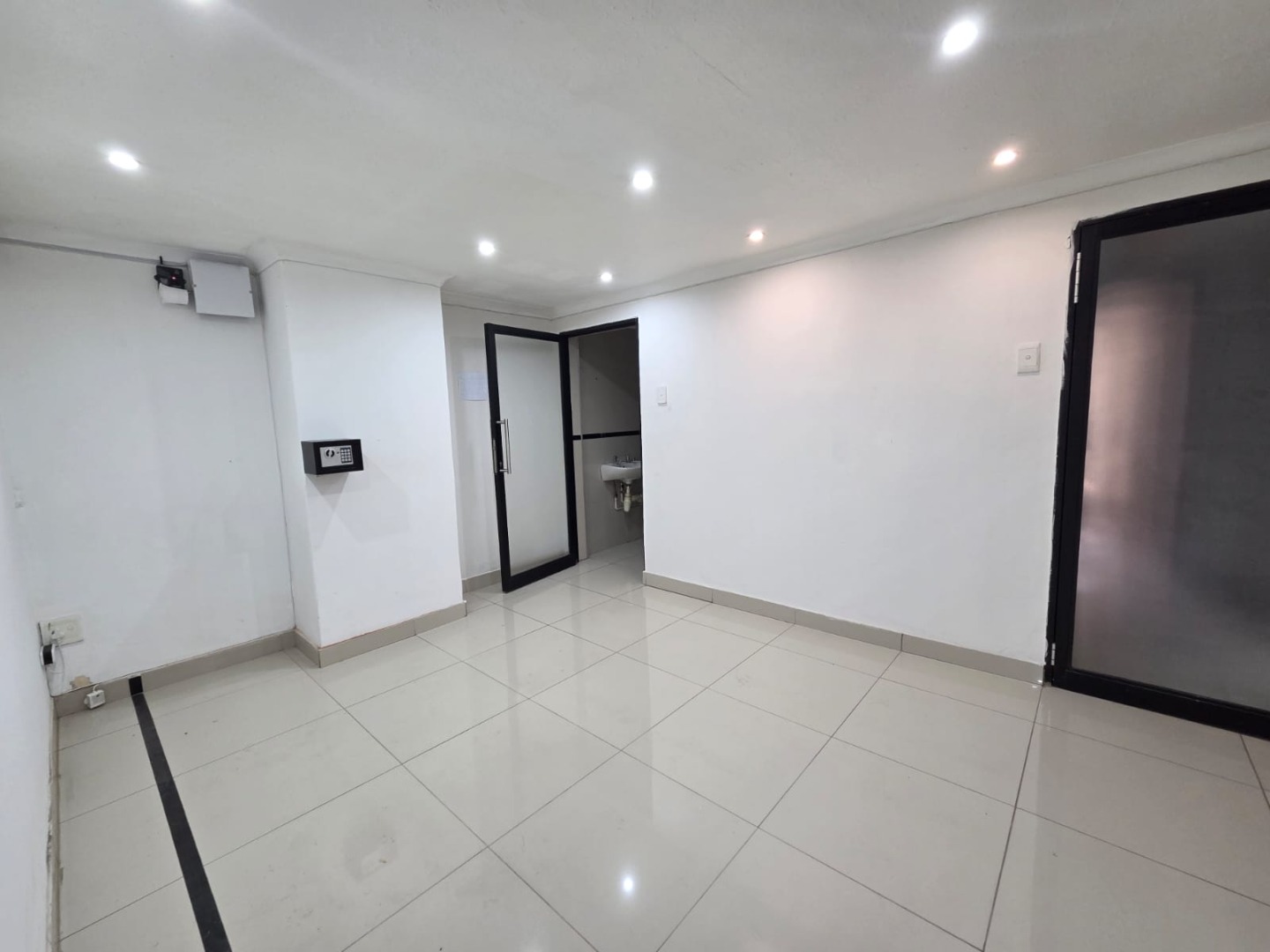 Discover this versatile and well-maintained first-floor office space, perfect for a variety of business needs. The layout includes modern tiling and stylish lighting throughout, creating a professional and welcoming atmosphere. Upon entry, a convenient reception desk opens into a spacious open-plan office area. The second office, previously used as a fitting room, comes with built-in stalls and mirrors but can easily be customized to suit your specific requirements. The third office offers direct access to a private lavatory and a communal kitchen area, which features basic built-in cupboards. Ideal for small businesses or professional practices looking for a functional and adaptable space.