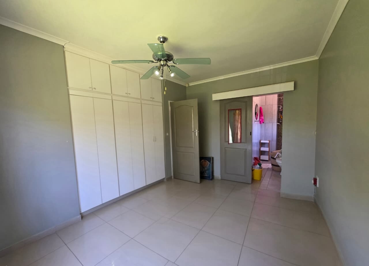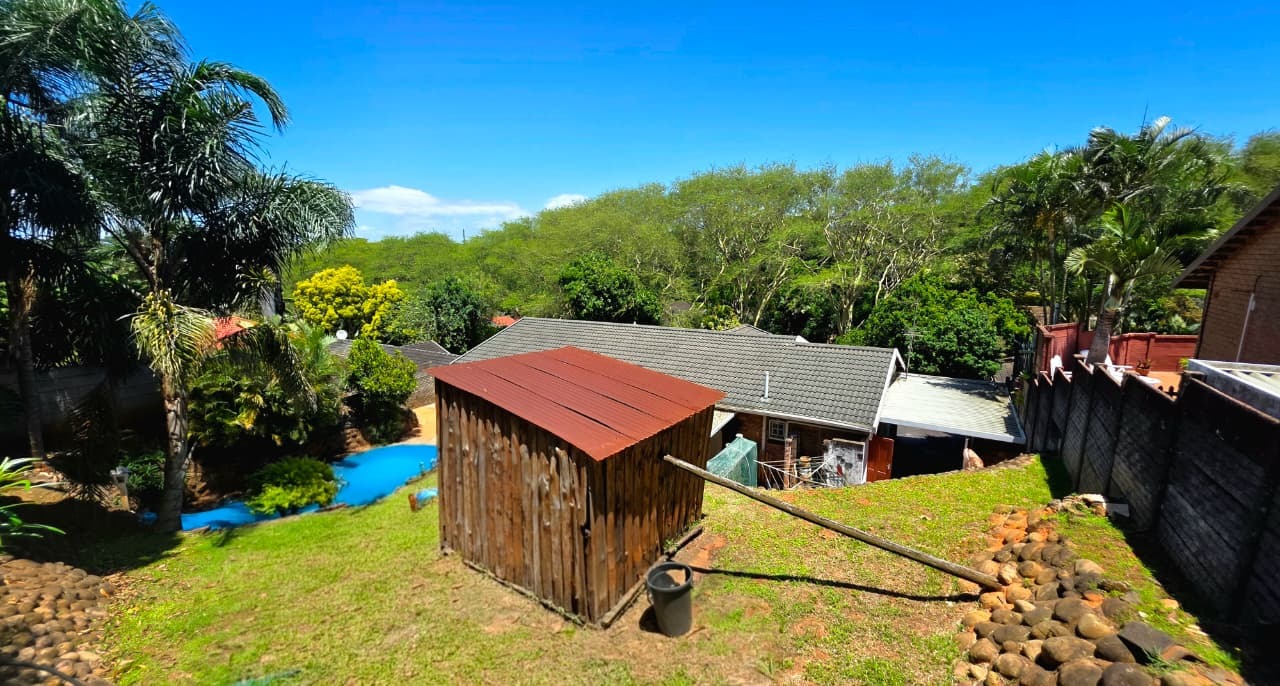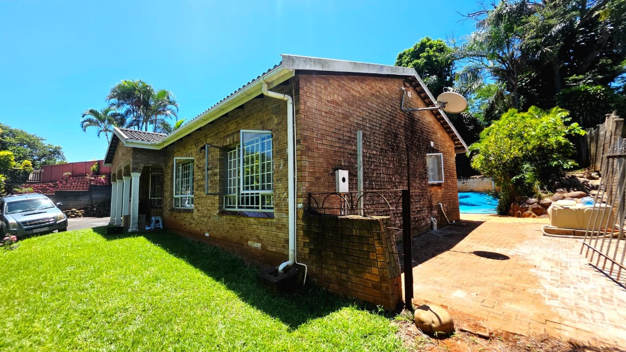 To the rear of the home, a covered entertainment area creates the perfect setting for hosting family and friends. This space opens onto a sparkling pool and well-maintained garden, ideal for outdoor living, weekend braais, and enjoying Durban’s warm climate.