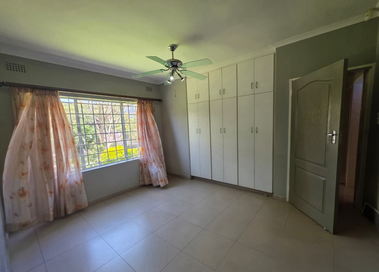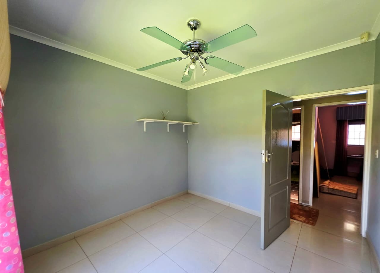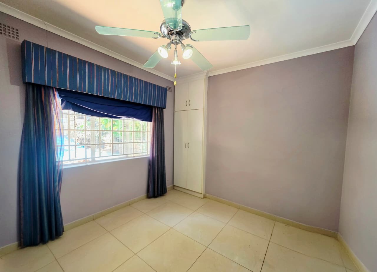 To the rear of the home, a covered entertainment area creates the perfect setting for hosting family and friends. This space opens onto a sparkling pool and well-maintained garden, ideal for outdoor living, weekend braais, and enjoying Durban’s warm climate.