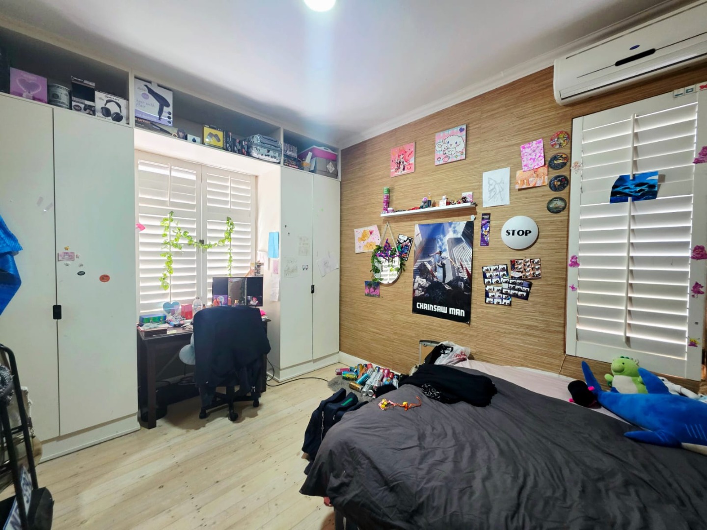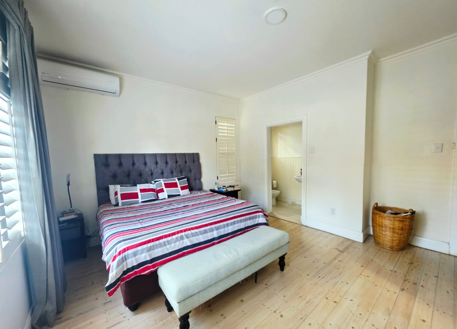 All three bedrooms are fitted with built-in cupboards and air conditioners, providing ample storage and comfort year-round. The main bedroom comes with its own en-suite bathroom, which features a sleek shower. The common bathroom is well-appointed with both a shower and a bathtub—perfect for quick morning routines or relaxing evening soaks.